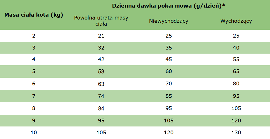 *Podane wartości mają charakter orientacyjny, a dawkowanie może się różnić w zależności od rasy kota.